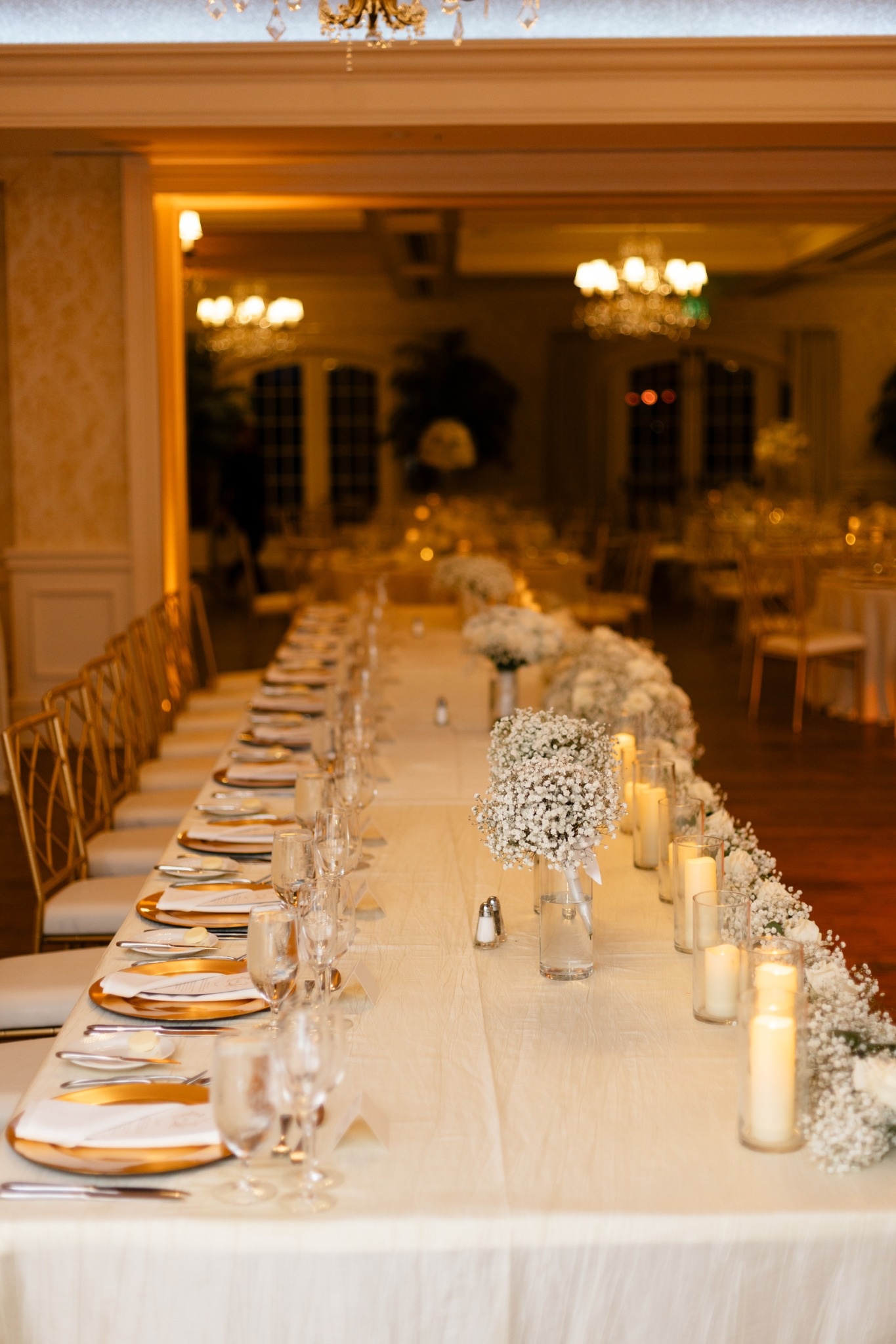 Following the ceremony, guests transitioned inside for an elegant ballroom reception — a space that transformed into a vibrant celebration filled with heartfelt speeches, joyful dancing, and the unmistakable energy that comes when two families become one.