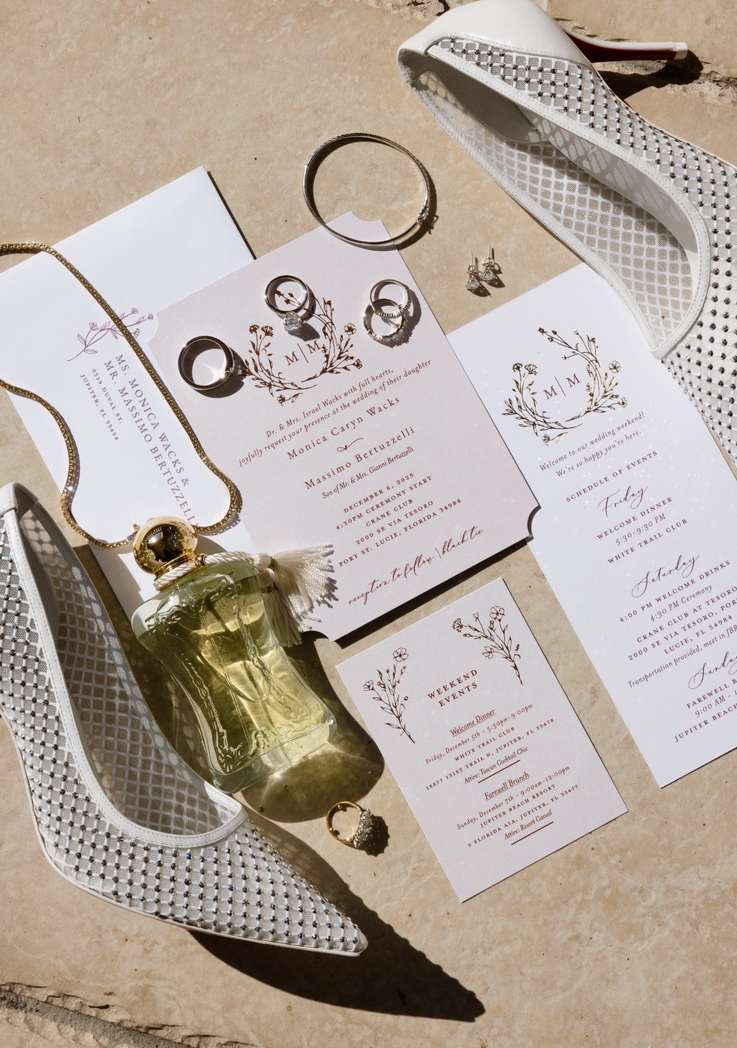 Monica, a Jupiter local with strong Jewish roots, and Massimo, whose Italian family traveled overseas to celebrate, envisioned a wedding weekend that honored both backgrounds while feeling relaxed, warm, and intentionally curated.